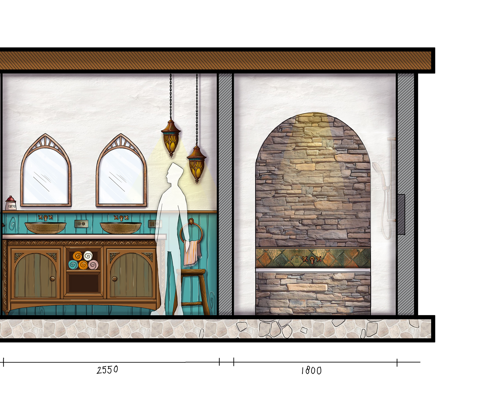 Design for kitchen in themed accommodation