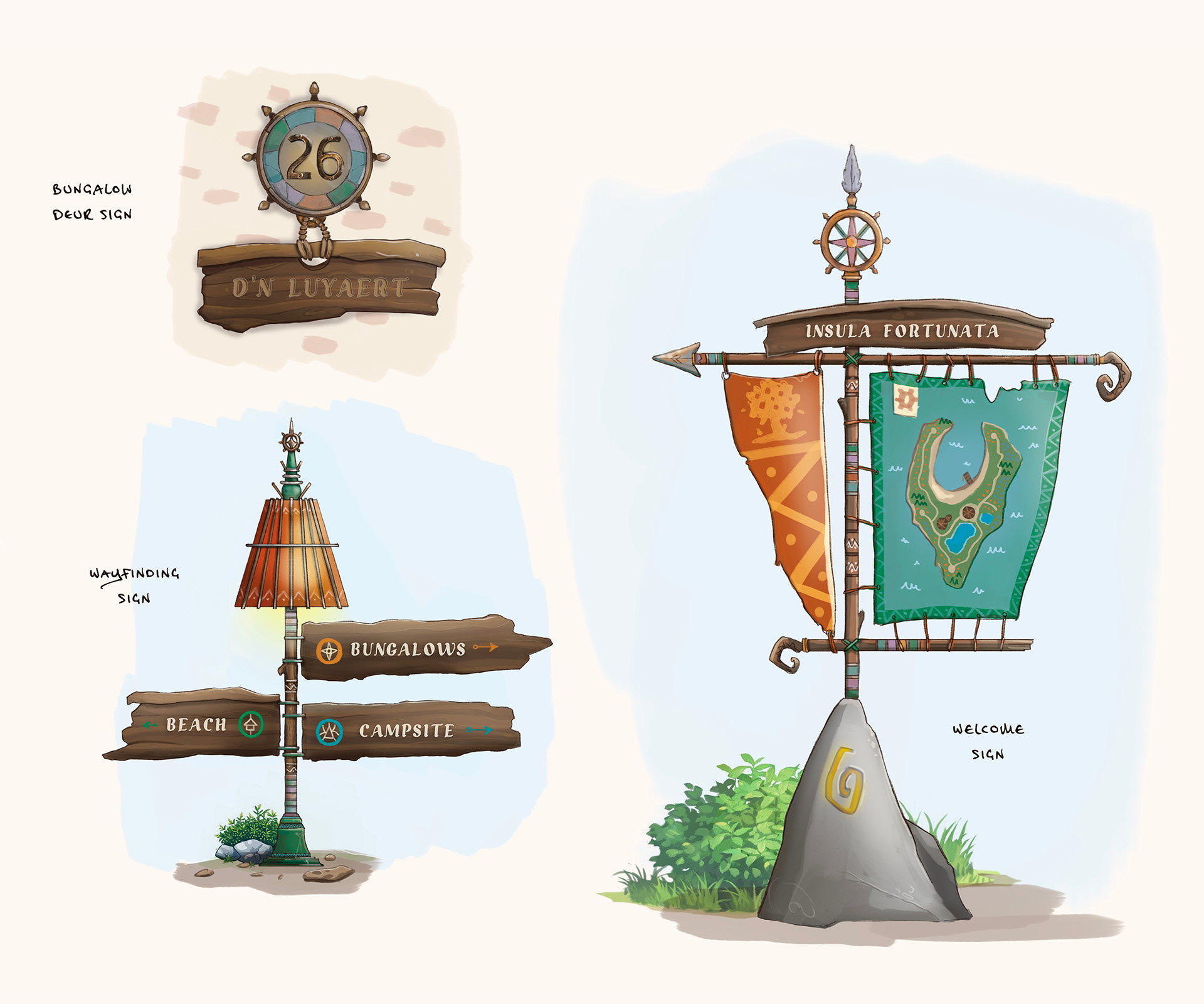 Wonderlyck ontwikkelde een thematisch concept dat als leidraad diende voor de accommodatie én de omliggende parkonderdelen. Het verhaal vormde de basis voor vormgeving, materialisatie en detailniveau. Het concept is visueel uitgewerkt in interieur- en exterieurontwerpen, detailschetsen, materiaal- en moodboards, gevelaanzichten en plattegronden. Daarnaast zijn ontwerpen gemaakt voor signing, wayfinding, parkverlichting en een receptiegebouw. Voor de accommodaties is een herkenbare sleutelstijl ontwikkeld.