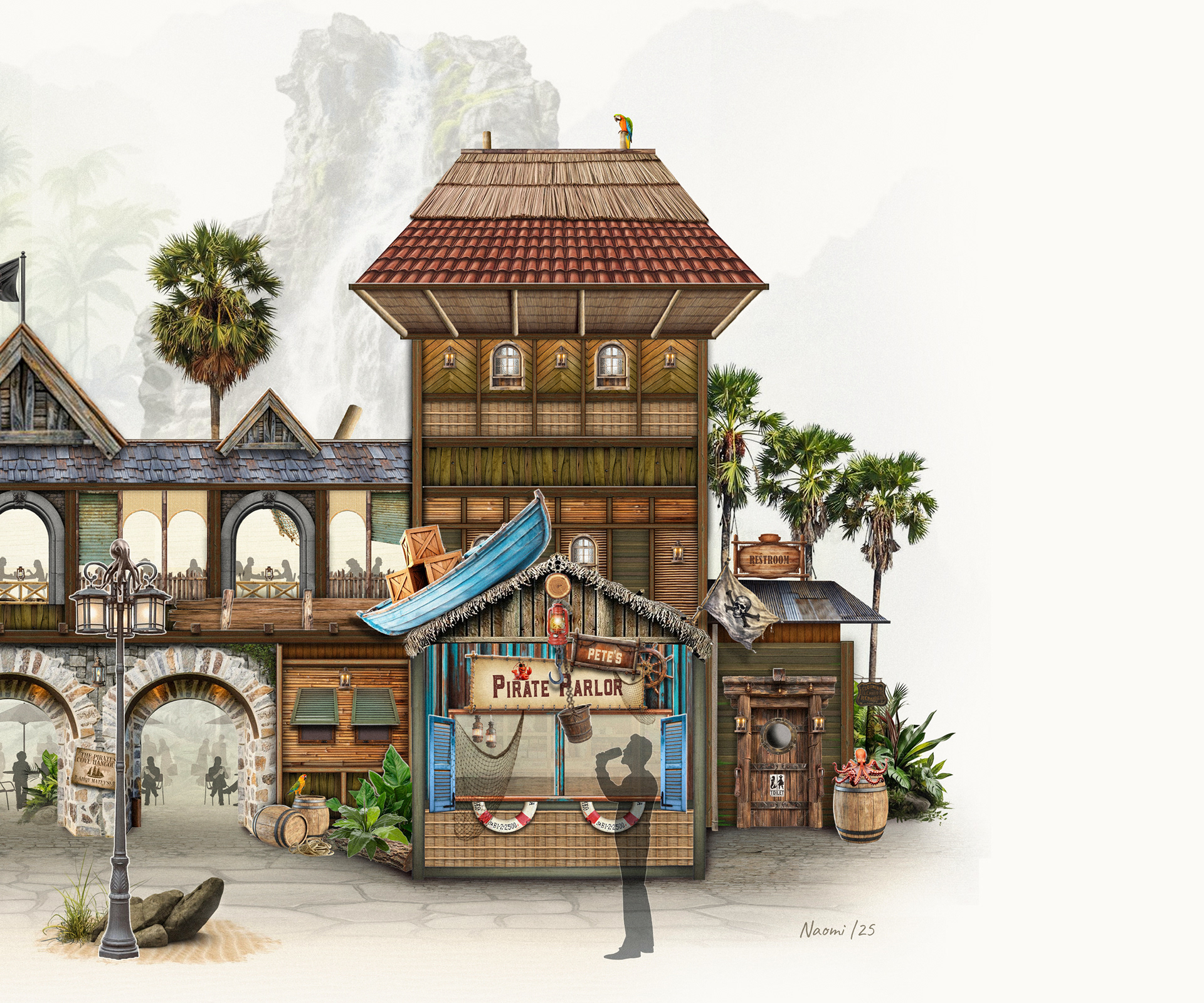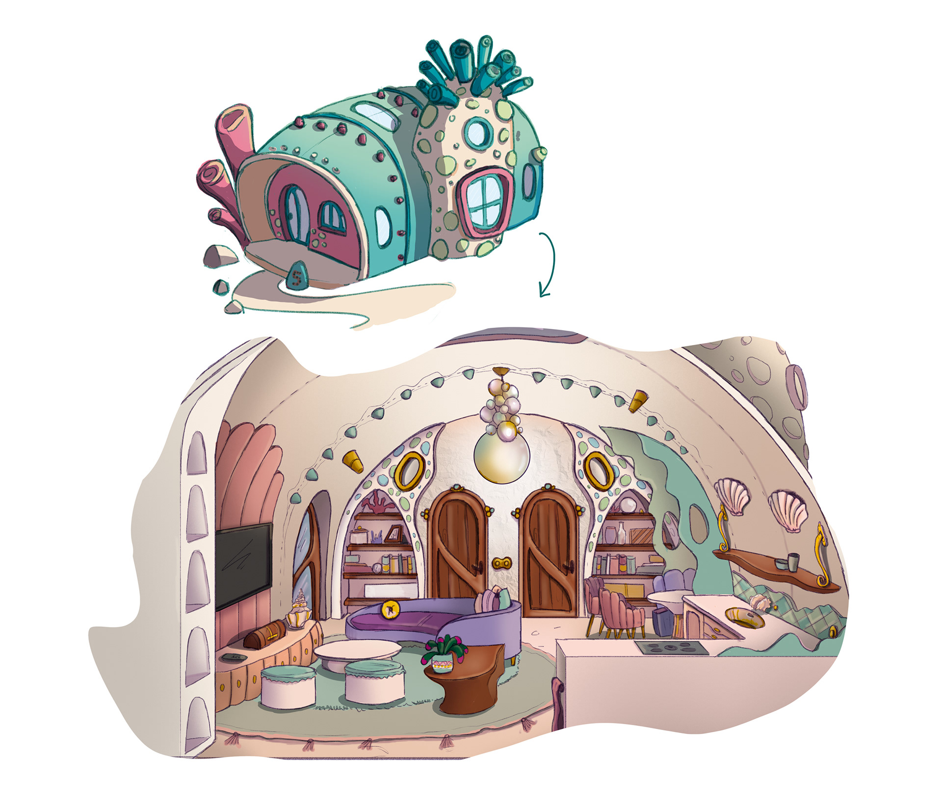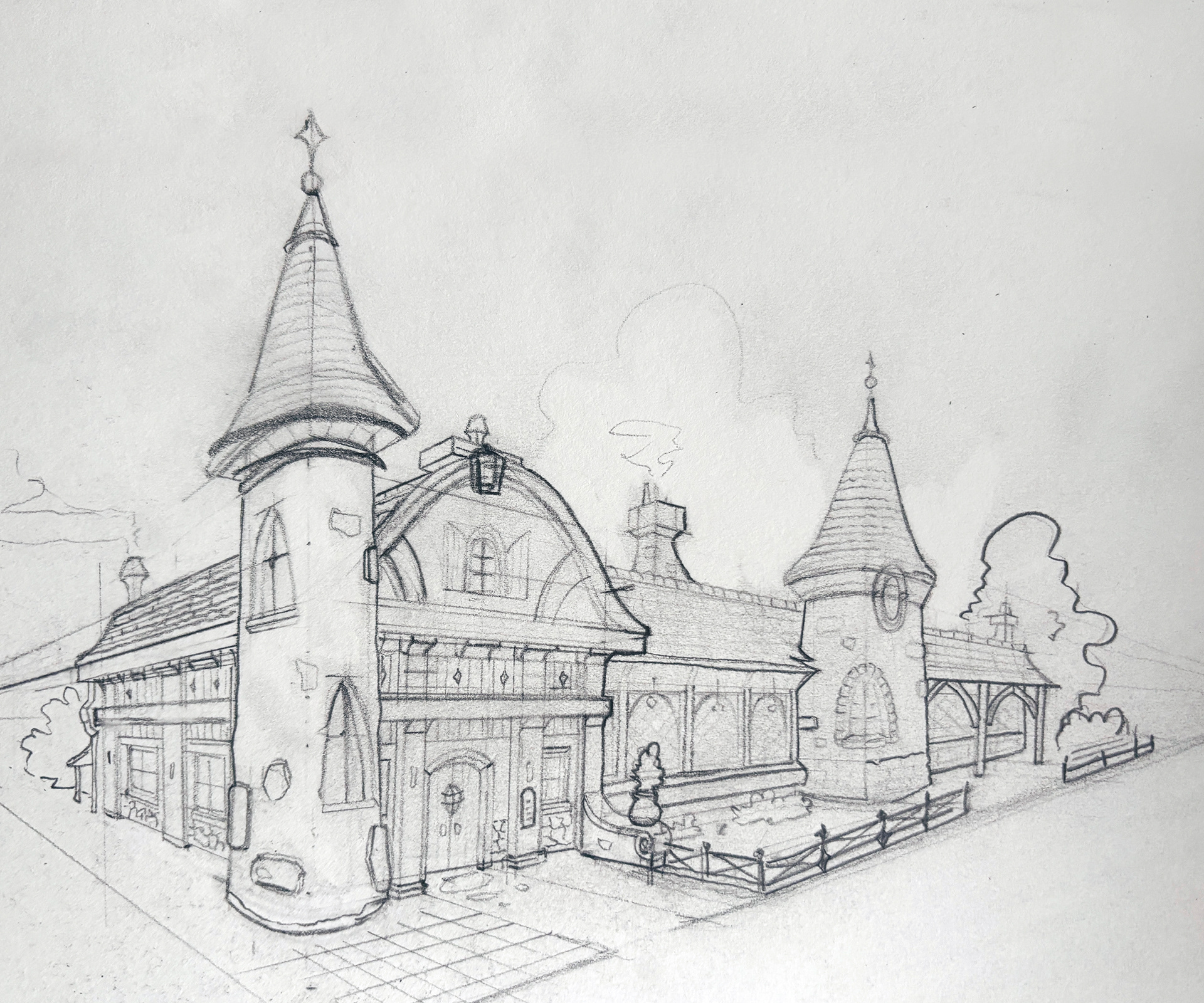 Concept sketch for architecture water themed hotel
